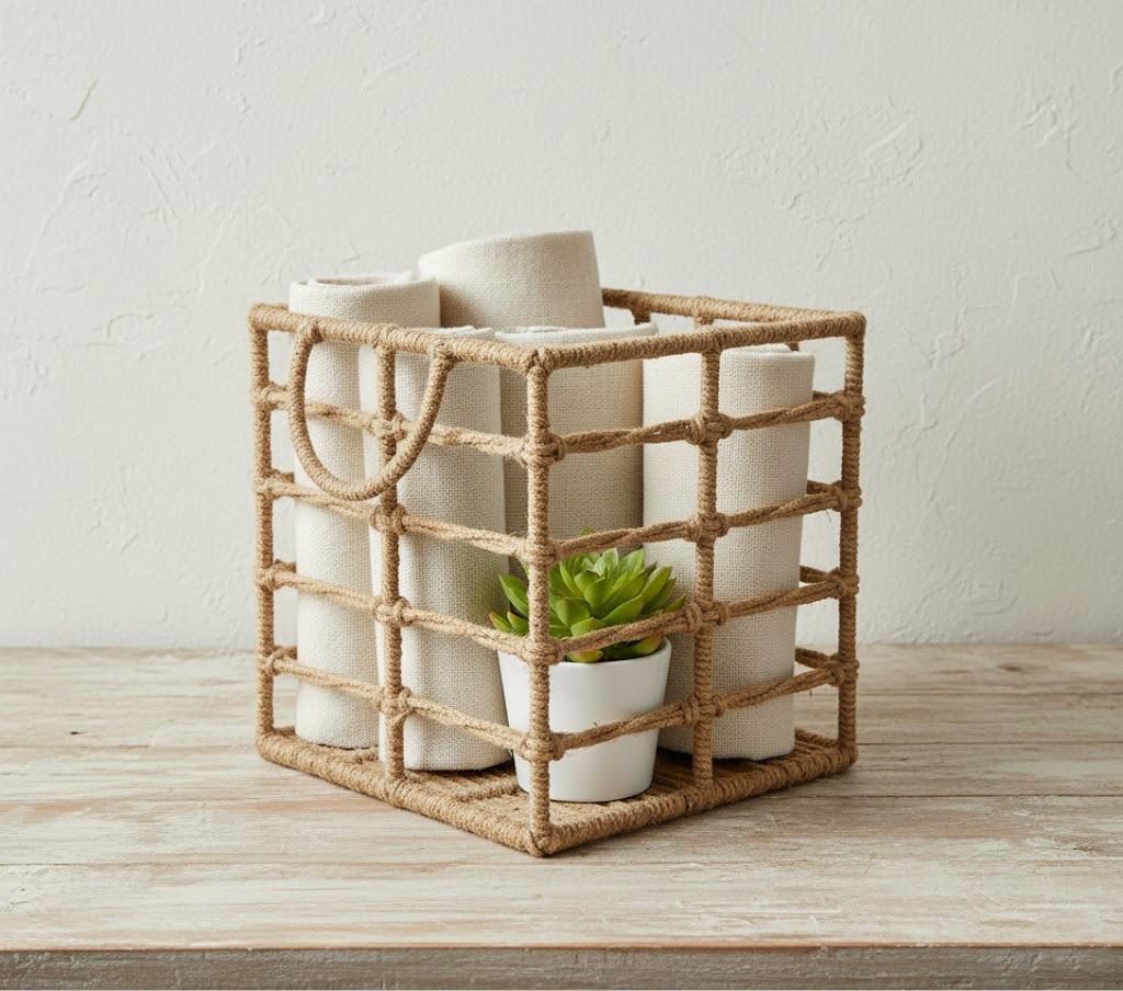 Bulk Natural Jute Rope Square Storage Basket with Metal Frame | Coastal Home Decor