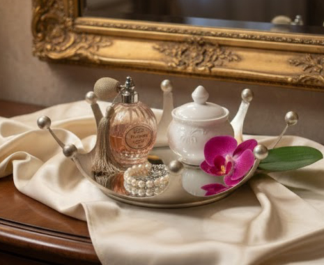 Luxury Crown Design Metal Vanity Tray | Decorative Perfume & Jewelry Organizer | Metal Crafts