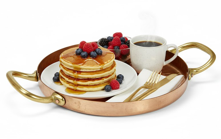 Ideal for serving breakfast, beverages, desserts, or bar items, this tray is widely used by hotels, cafés, fine-dining restaurants, resorts, and international lifestyle retailers. Its warm copper tone and refined finish make it a preferred choice for luxury hospitality and curated home décor collections.